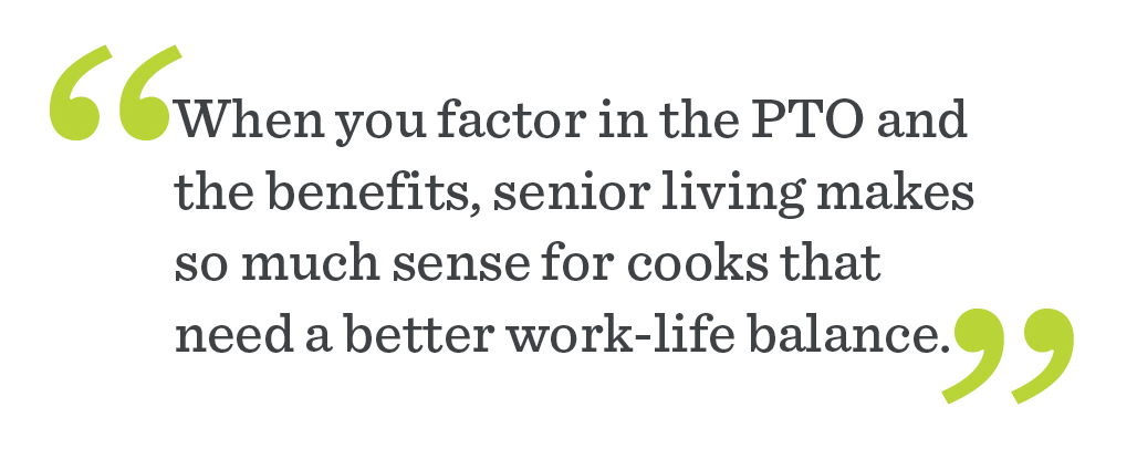 “When you factor in the PTO and the benefits, it makes so much sense for cooks that need a better work-life balance,” he says.