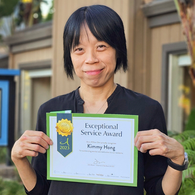 “Kimmy was born in Macau, China. Her family immigrated to the United States in 1982. In our Customer Satisfaction Survey, there is one name that appears more than anyone: Kimmy Hong. Down to each resident, everyone commends her exceptional work and personality. Kimmy is upbeat, high energy, and caring every day and every shift, no matter the circumstances. She’s an inspiration to all who live and work here.”